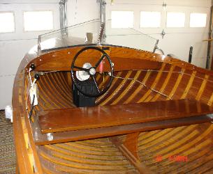 | Builder: Shell Lake (Hull # 16-956) Model: 1956 16' Scamp Boat: Beautiful condition Dumphy steering wheel 3 pillar cut glass windshield 6 6" tall fire extinguisher Cedar on Oak strip boat Battery operated 6 volt rear lamp Motor: 18 hp Johnson used less than 1 hour Like new original plugs, paint, interior Trailer: New Yacht club Selling Price $9500 |